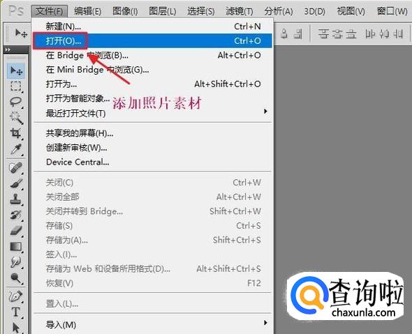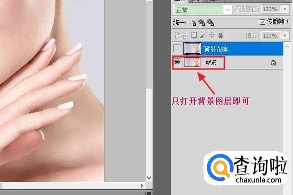 打开PS软件以后,我们依次点击“文件”-“打开”然后将照片素材添加进来,比如我们添加的是下图所示的一张美女图片,然后复制一个图层;
