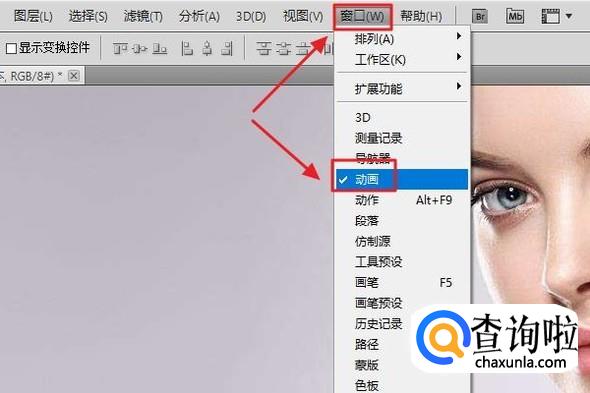 接下来就是制作动画效果了,我们点击工具栏的“窗口”-“动画”,然后在左下角的动画帧复制一帧;
