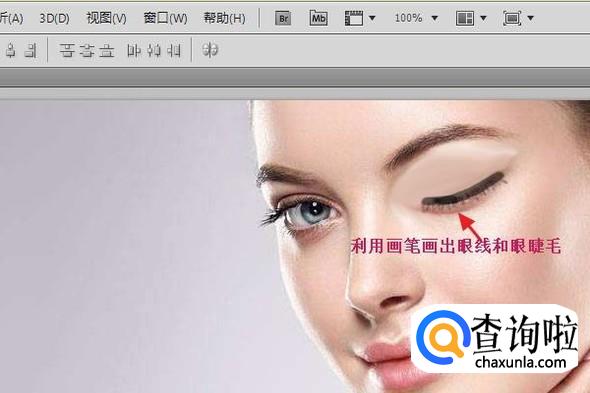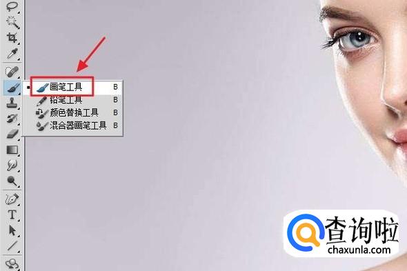 不过不论是仿制印章工具还是涂抹工具,都会对眼睫毛的部分造成影响,为了使闭合时的效果更佳逼真,我们选择“画笔工具”,然后点击画笔对应上方的“切换画笔工具”