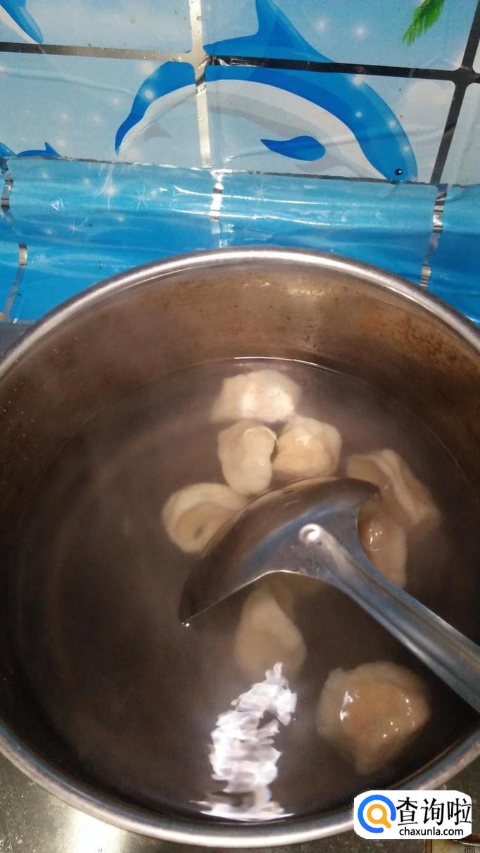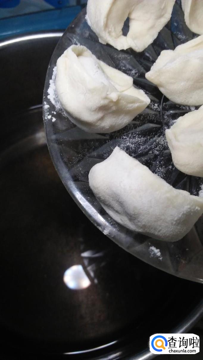 锅中烧开水,水开后将做好的饺子,放入锅中煮熟,用勺子搅一下,防止粘锅。
