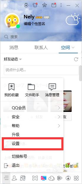点击QQ面板左下角的三条横线图标(主菜单),选择“设置”。