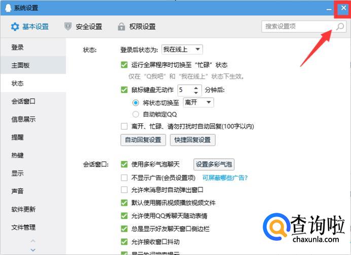 注意这里取消勾选后即完成了设置,目前QQ都已支持修改即保存,所以无需再点击保存,直接点击界面右上角关闭按钮退出就行了。