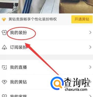 在“我的”页面,点击“我的装扮”,进入下一页面,如图所示。