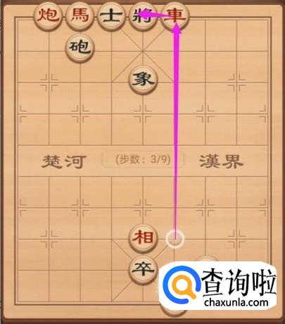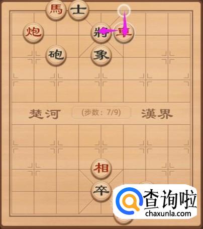 那么,我们来走第二回合,红方车前进7步,对黑方形成将军,如图所示。