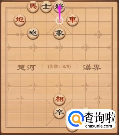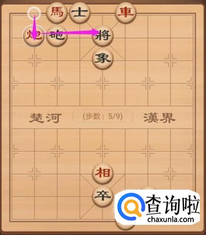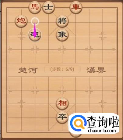 我们接着来进行第三回合,红方炮向上走1步,对黑方再次造成将军,如图所示。