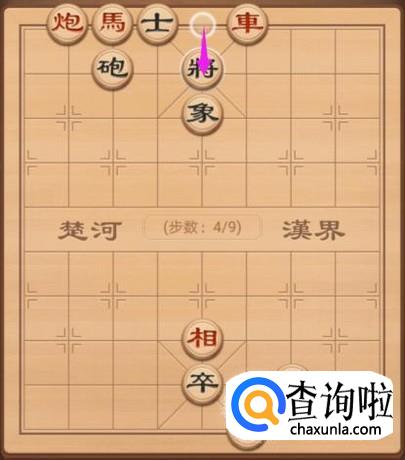 接着我们来进行第四回合,这个回合,红方车退后1步,对黑方形成将军,如图所示。