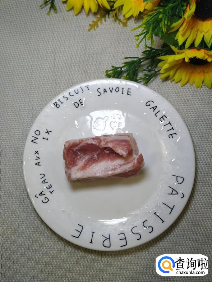 准备适量五花肉,洗净后切成块,放入盘中备用,五花肉肥瘦相间,非常适合做炸酱面。
