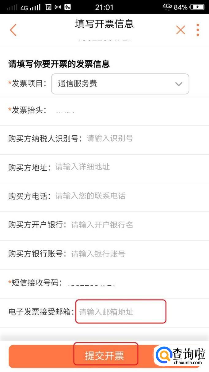 接下来,就需要填写开票信息了,带星号的是必填的,此外还需要写上电子发票接受邮箱,填写完毕,点击“提交开票”,就可以了。