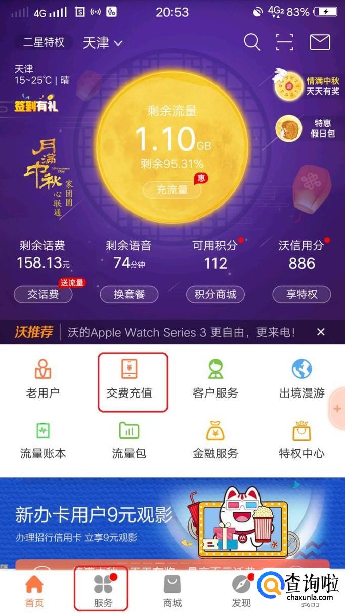 首先,进入“中国联通手机营业厅”app,登录之后在首页点击“交费充值”就能完成交费。