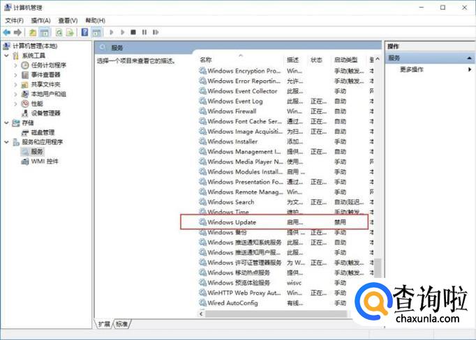 在这里,我们转动鼠标滚动轮往下拉,在服务列表里找到“windows update”这个服务。