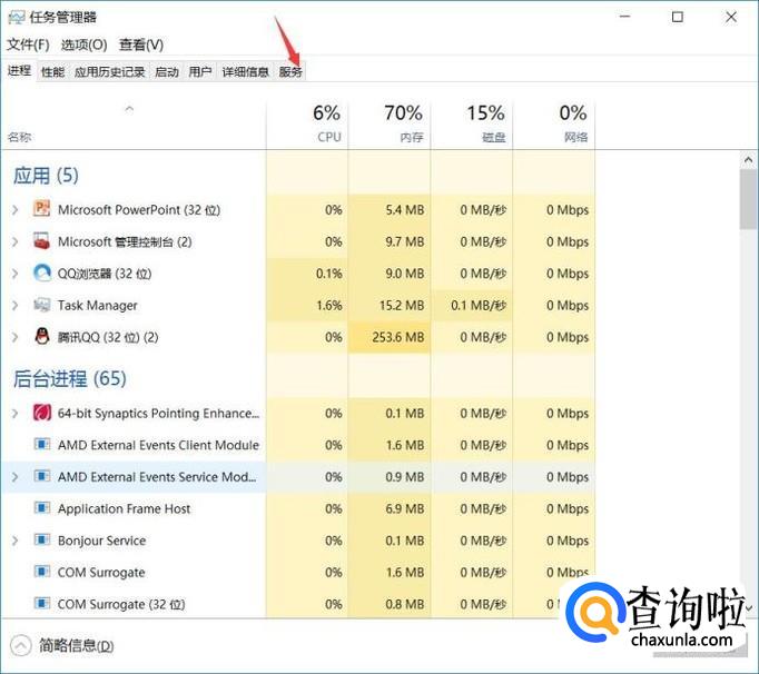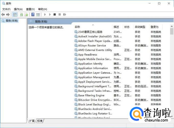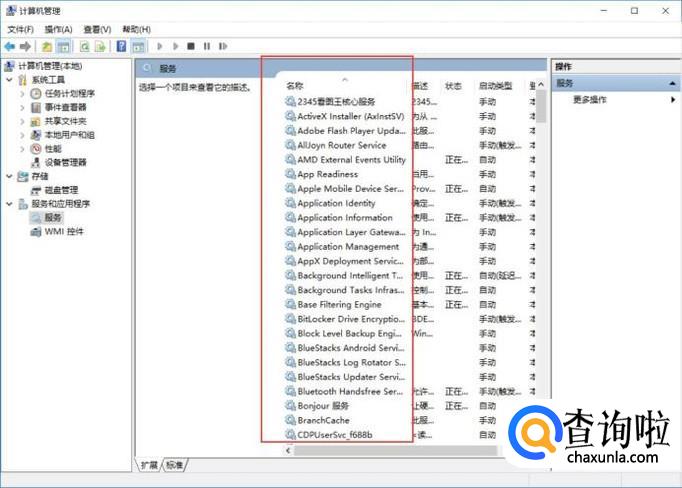 展开列表中我们选择服务—服务,点击进入服务设置面板,在这里可以刻看到有很多系统服务程序。