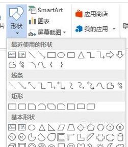 形状分类:线条、矩形、基本形状、箭头,公式符号等