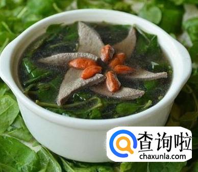 艾叶枸杞猪肝汤,艾叶洗干净,猪肝搓盐洗干净备用,锅中倒入适量水,水开加入艾叶和猪肝,煮到变色,加入枸杞,加盐调味即可。