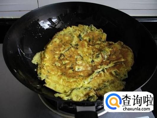 艾叶煎蛋,把艾叶洗干净沥干水,切成碎末,鸡蛋打入碗中,倒入艾叶,生抽,盐拌匀,锅中倒入适量油,油热倒入蛋液,鸡蛋液凝固即可