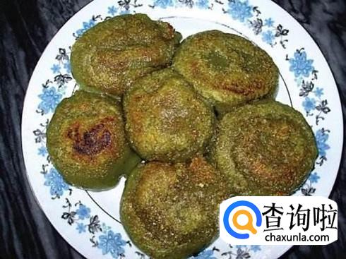 艾叶饼,艾叶洗干净泡水一天,锅中倒入适量水,水开倒入艾叶焯水后捞起,把焯水好的艾叶放入搅拌机,加水打成糊状,倒入适量的糯米粉,适量白糖,揉成面团,放置30分钟,捏成小圆饼,锅中倒入适量油,把艾叶面团放入煎至两面金黄即可