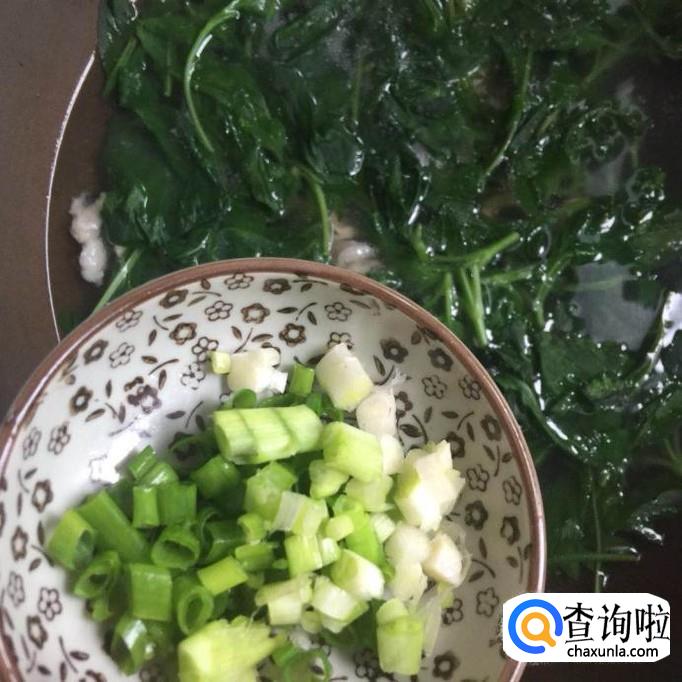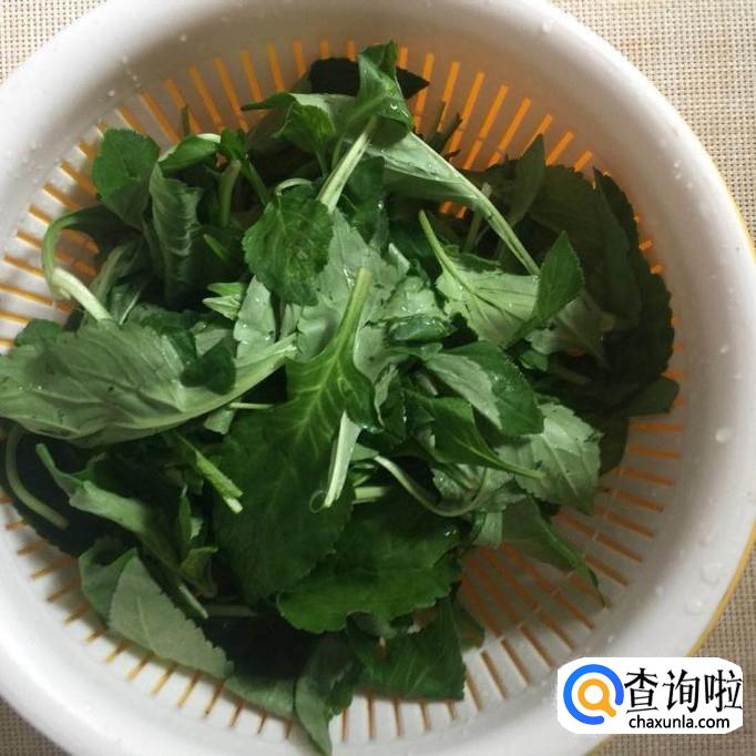 首先用清水把苦菜泡半个小时,捞出沥干,如下图所示。这里小编要提醒大家的是,最好采摘那种苦菜嫩芽回来煮才好吃。