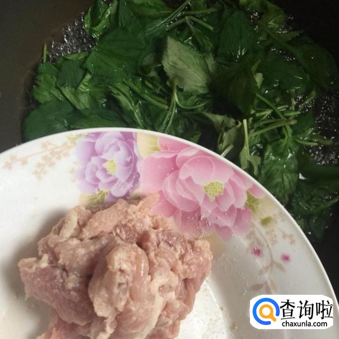 苦菜,瘦肉,地瓜粉,盐巴,味精,茶油,香葱