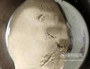 莜面粉加开水揉成光面面团,盖保鲜膜醒发。