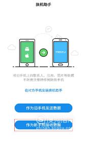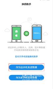 两个手机都打开“换机助手app”,旧手机选择“作为旧手机发送数据”,新手机选择“作为新手机接收数据”