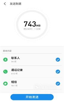 旧手机选择要发送的数据,选完后点击发送。