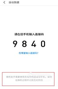 旧手机会出现“链接码”,在新手机上输入。