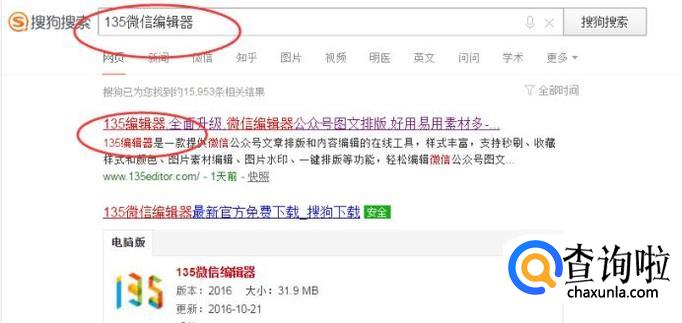 在浏览器上搜索【135微信编辑器】,如下图所示: