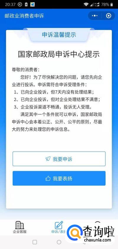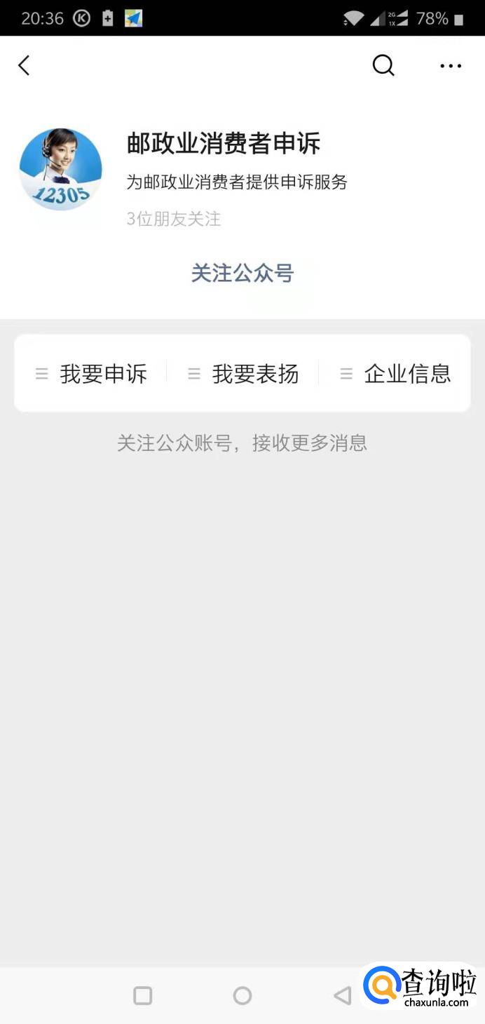 如果在线客服也不能解决我们的问题,那么我们还可以向邮政投诉。首先打开微信,搜索“邮政业消费者申诉”。