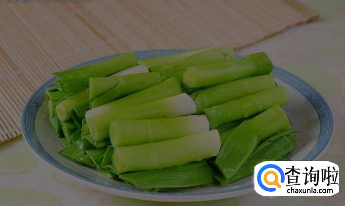 新鲜的大葱洗干净,用刀将其切成如下图所示的小段,备用