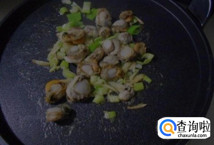 然后我们在锅中加油,待油八分热时,加入老抽,豆瓣酱,姜和蒜,爆炒,然后加入备好的扇贝,爆炒,炒大概五分钟左右,加入少许盐,翻炒均匀,然后我们向其中加入备好的大葱,炒匀