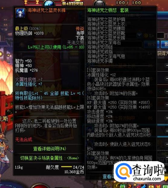 下装方面,可以提供BUFF技能等级加成的装备有很多,但是在当前版本,通常都会选择“海神腿”系列,只作为BUFF装备来说性价比还是很高的。