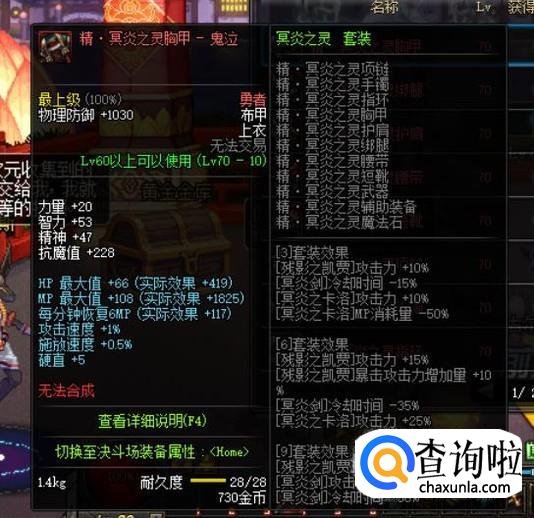 首先重点来说一下异界套装,异界2期中的“冥炎之灵”套装,3件套、6件套以及9件套效果中分别提升了【残影之凯贾】10%、15%以及25%的攻击力,6件套效果中还额外提升了【残影之凯贾】10%的暴击攻击力增加量。