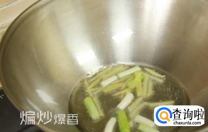 将葱白、姜丝炒出香味。