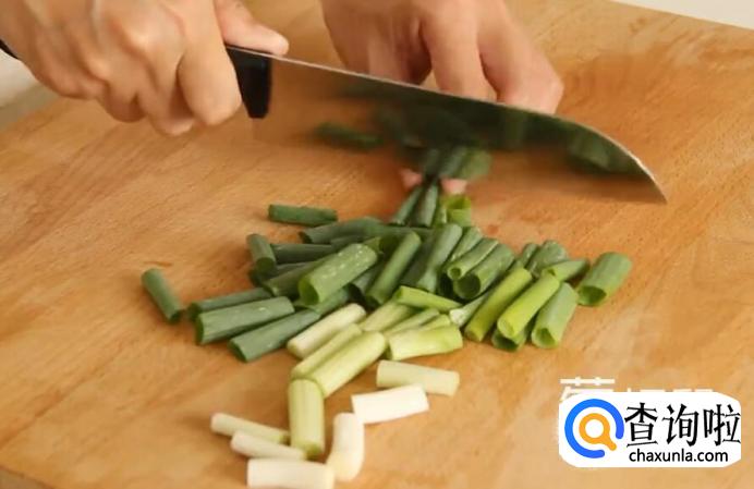 首次将葱切段。