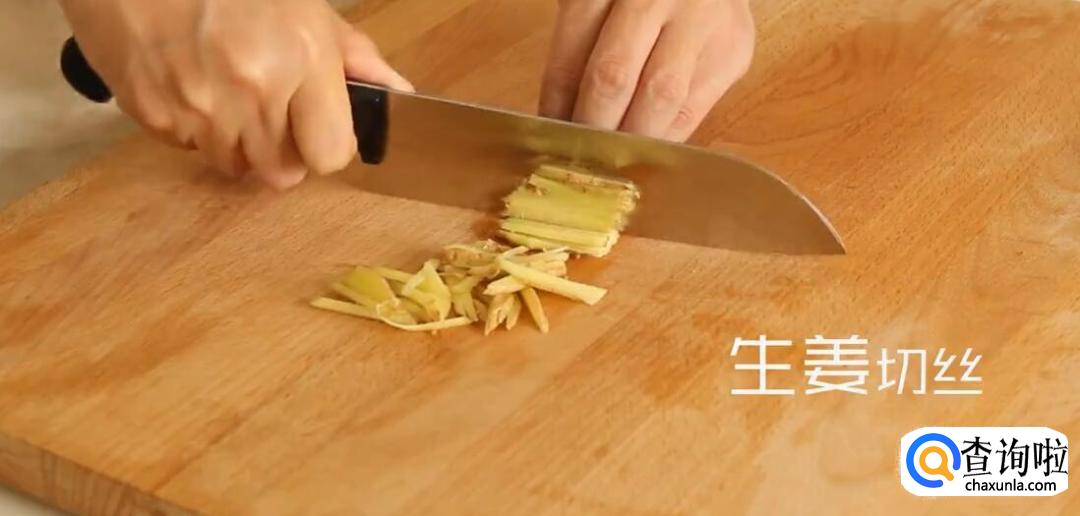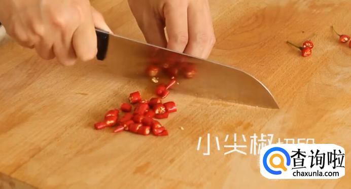 生姜切丝、小尖椒切段。