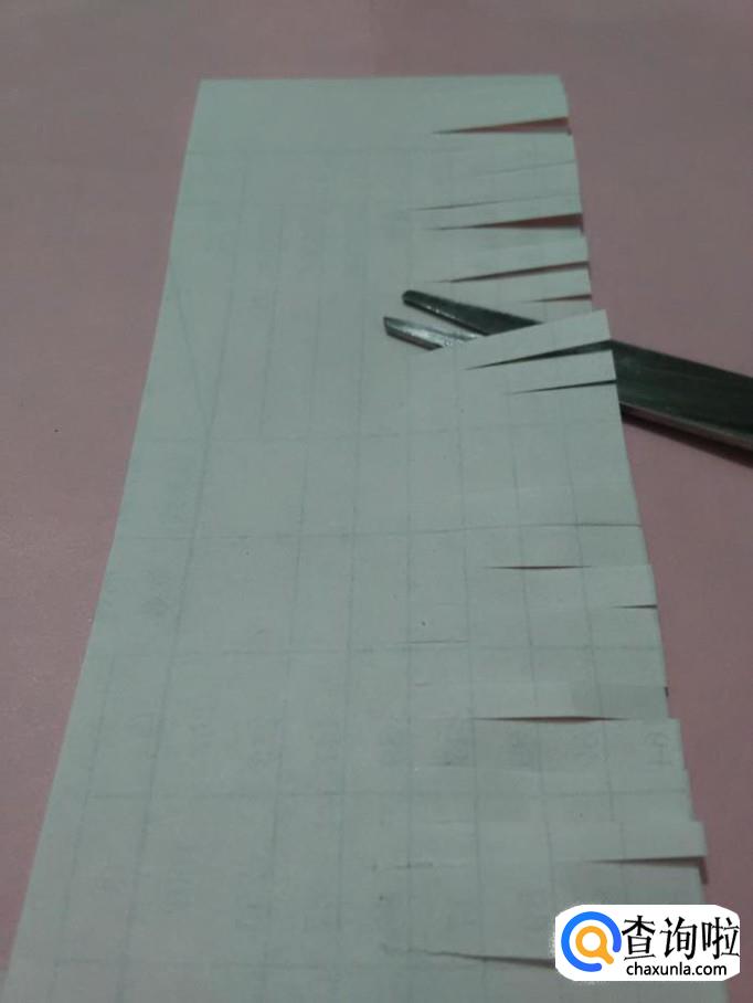 用剪刀将纸条的右半边全部剪成细长条,当作花瓣。