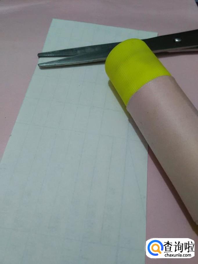 准备一个细长的纸条、一个胶棒、一把剪刀。