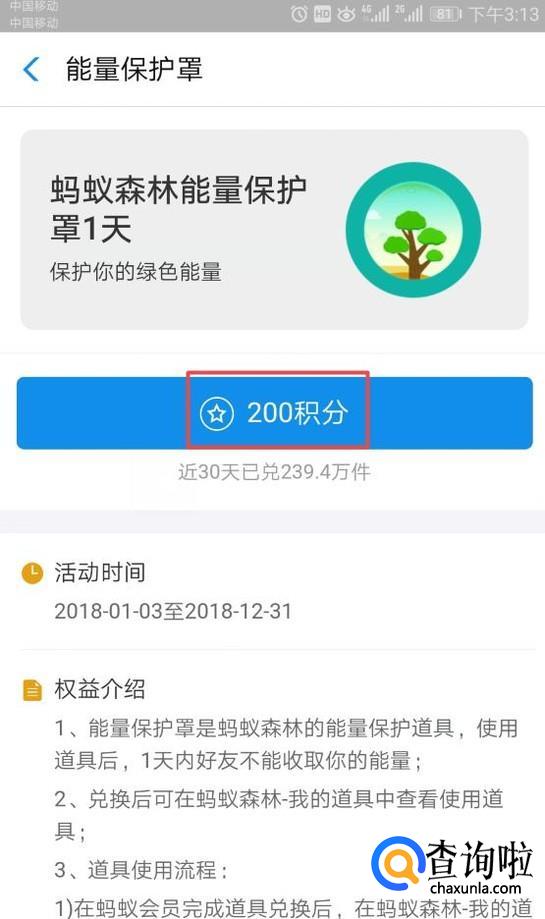 如何用蚂蚁会员积分兑换蚂蚁森林能量保护罩