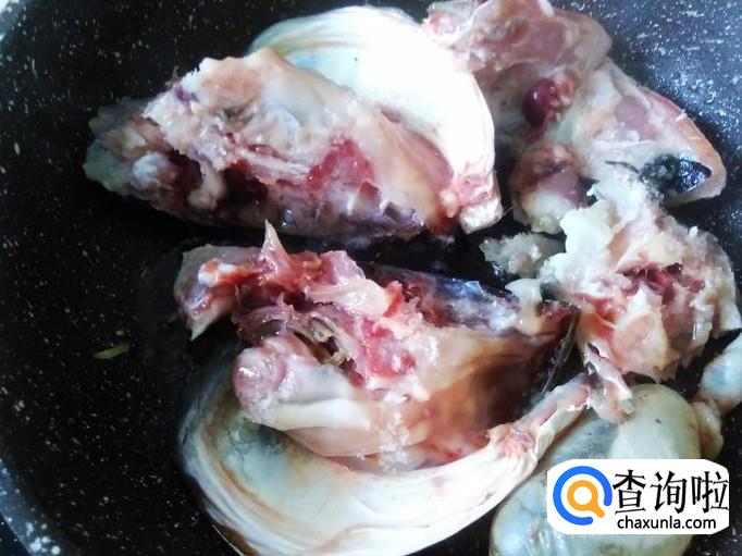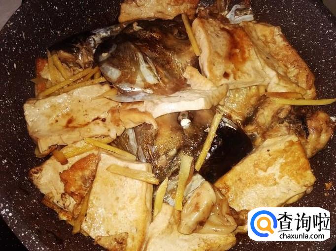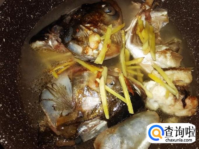 再把鱼头放进去煎。