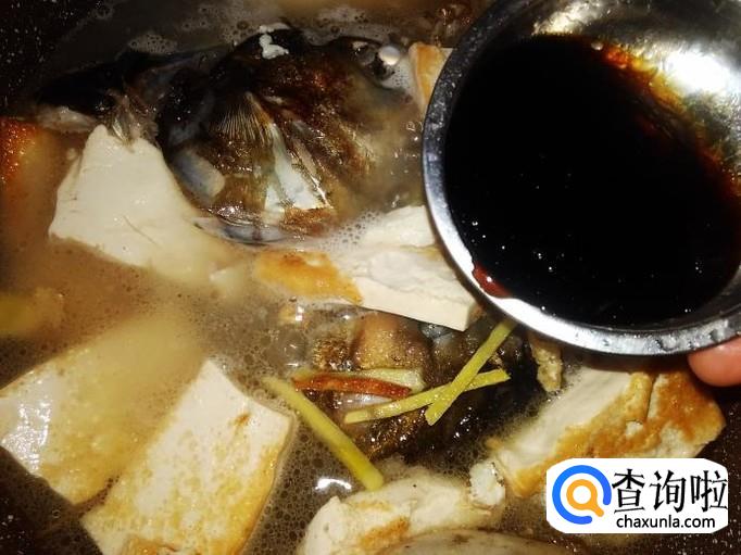 河鱼头1个,水豆腐2砖,姜丝适量,生抽1勺,料酒1勺。
