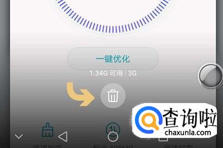 进入到应用之后,我们在首界面的最上方点击“一键优化”,这样可以清理掉一部分后台应用,此外还可以点击虚拟按键右侧的方框图标,见图二...