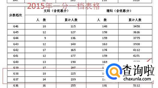 通过查看2015年的一分一档排名表格,我们发现2015年排名4924的考生成绩,分数介于638—637之间,因此我们估计2016年的650分与2015年的637.5分的含金量差不多。