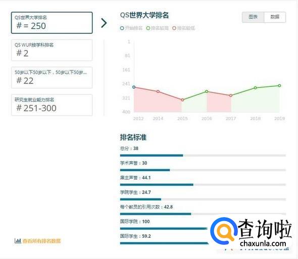 注:QS世界大学排名是世界公认最具影响力的全球性大学排名之一,主要评价指标为:学术领域的同行评价(40%)、全球雇主评价(10%)、单位教职的论文引用数(20%)、教师/学生比例(20%)、国际学生比例(5%)、国际教师比例(5%)
