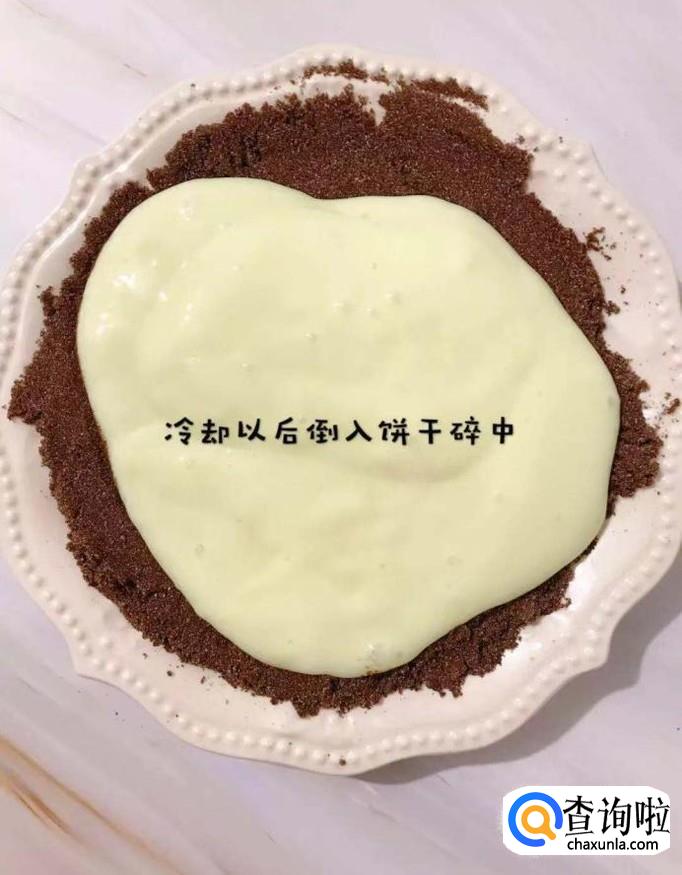 接着把冷却好的麻薯铺在饼干碎上面就可以了。