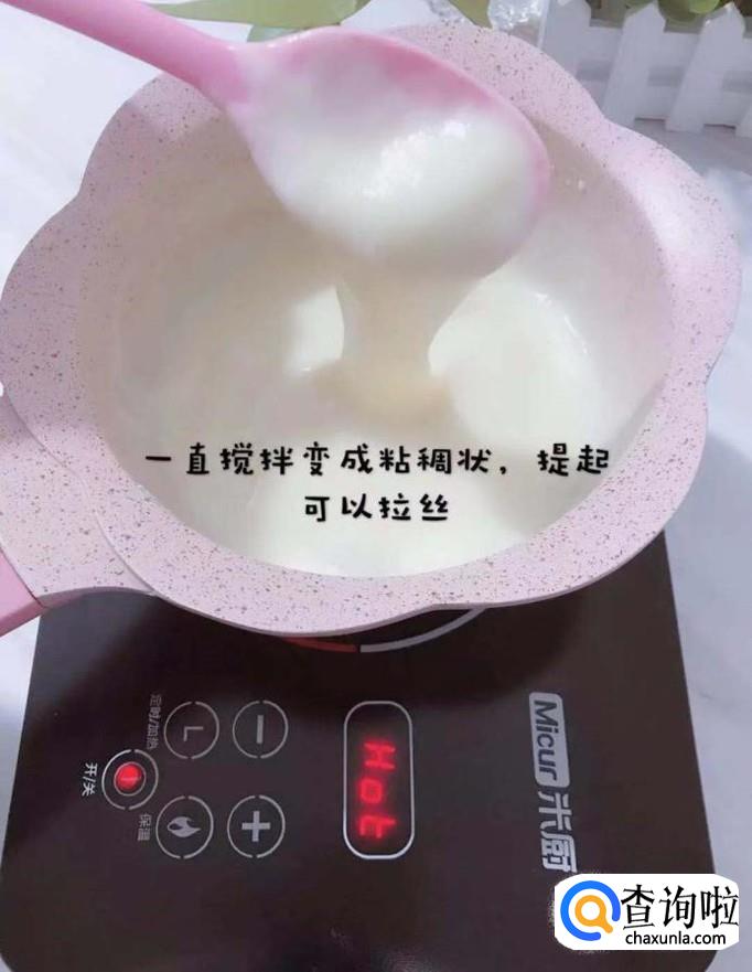 一直搅拌到呈粘稠状态,提起可以拉丝就可以了。