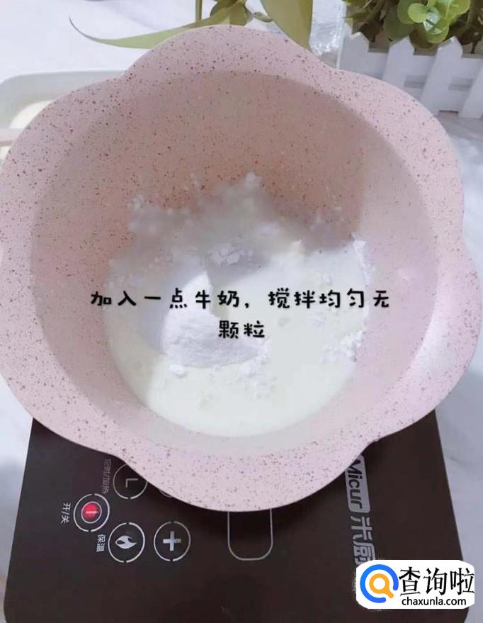 然后加入一点牛奶,搅拌至无颗粒状,如下图所示。