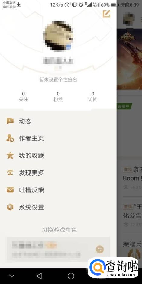 在主界面上点击个人头像,进入副菜单界面。在副菜单界面会出现“动态”、“作者主页”、“我的收藏”、“发现更多”以及“系统设置”等等,此时我们点击“发现更多”按钮,进入“发现更多”界面。