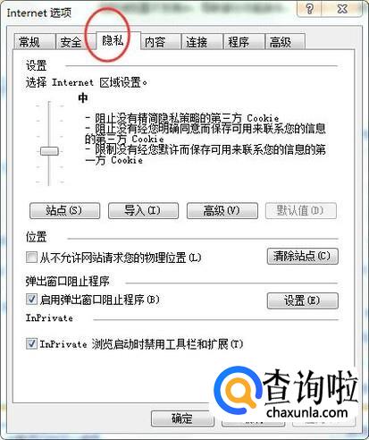 然后切换到【隐私】选项卡,如下图所示:
