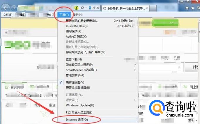 打开IE浏览器,点击【工具】---【Internet选项】,如下图所示: