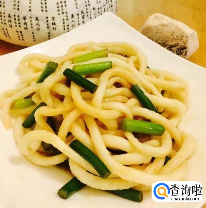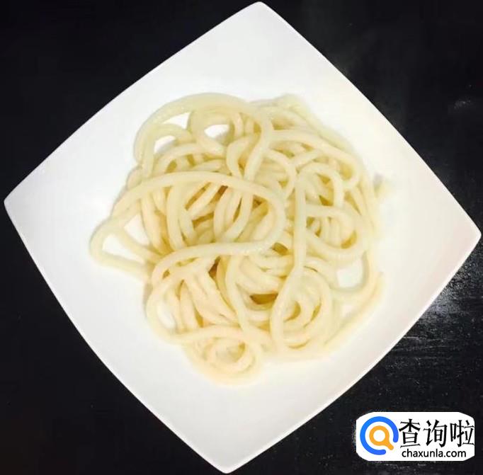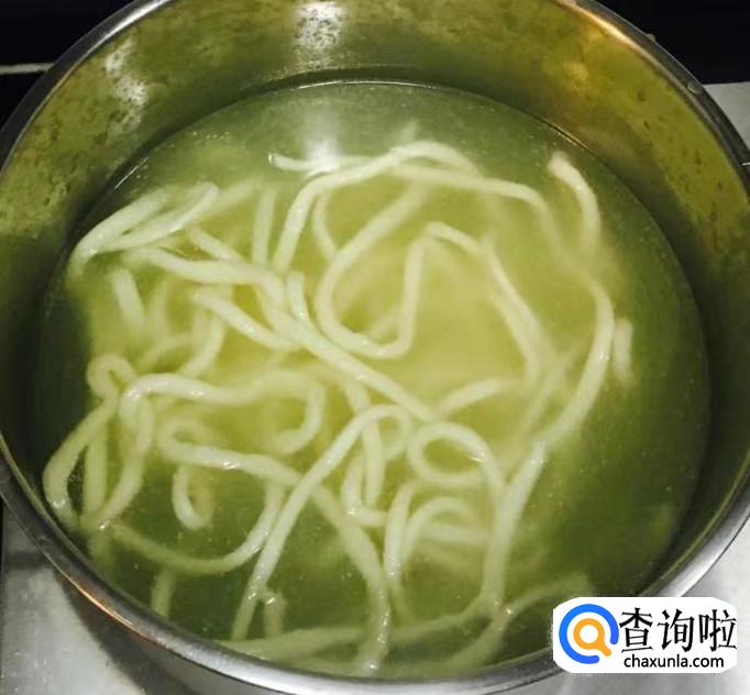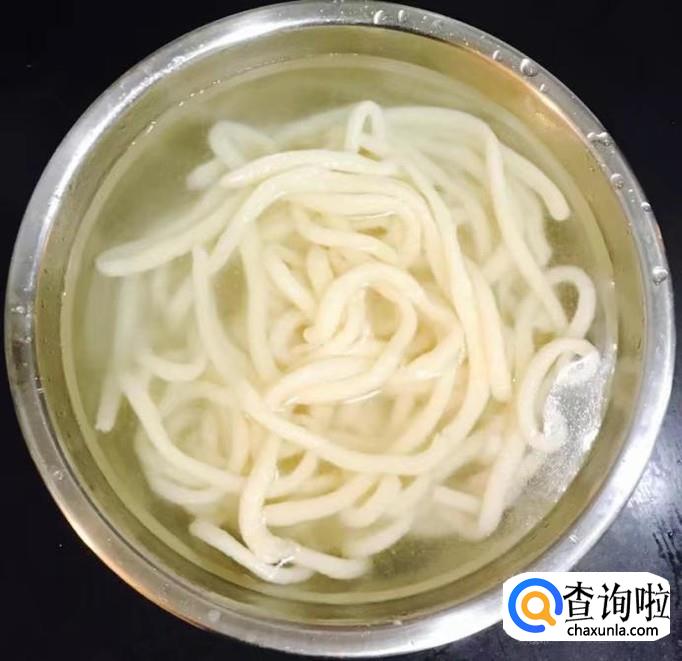 锅中加水煮沸轻轻拉扯面条使其变细放入锅中,煮至没有硬心后捞出过凉水