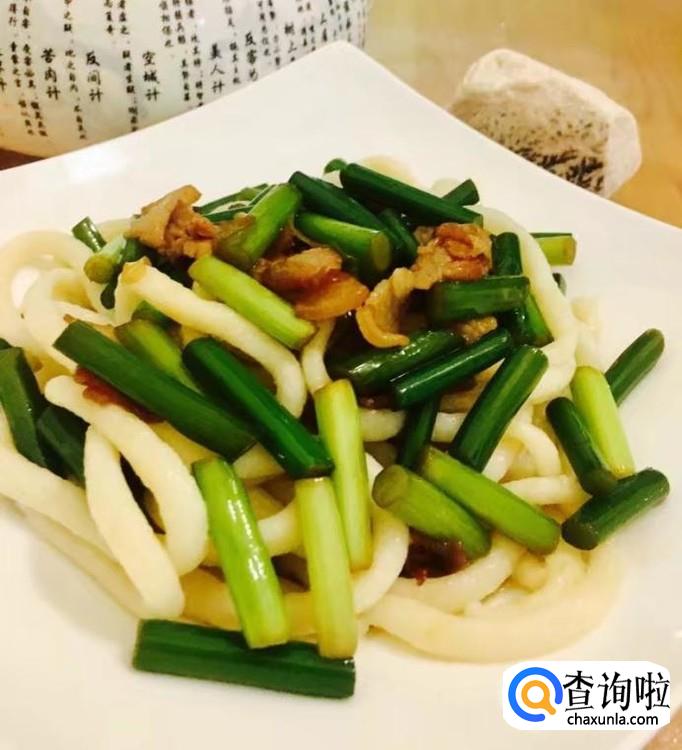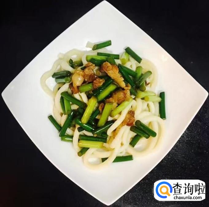 面粉,五花肉,蒜苔,花生油,盐,水等等